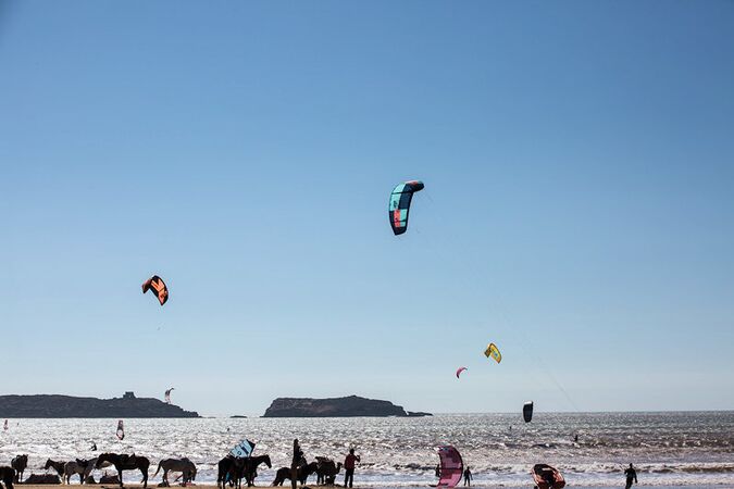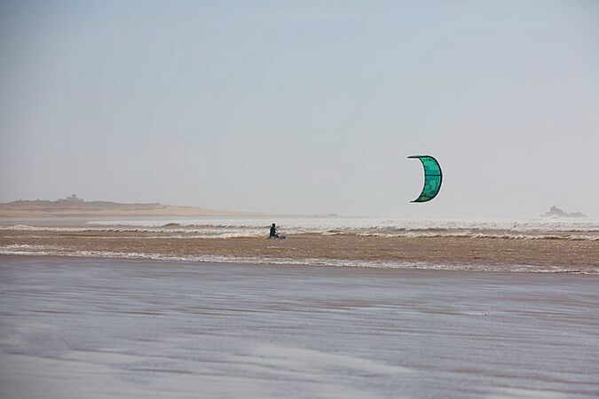 Ein riesiger Sandstrand und das Stehrevier mit sandigem Untergrund in Ufernähe sorgen für einen leichten und komfortablen Einstieg. Das Revier bietet genügend Platz, sodass sich auf dem Wasser niemand in die Quere kommt. Bei Ebbe zieht sich das Meer um ca. 150 Meter zurück und der Weg zum Wasser wird länger. Das Revier direkt an unserer Station ist ideal für Welleneinsteiger. Weitere Wellenspots wie Moulay und Sidi Kaouki (ca. 20 Autominuten entfernt) bieten noch mehr Abwechslung. Auf Anfrage organisiert das Center Ausflüge zu den Wellenspots. Trotz vergleichsweise kühler Wassertemperaturen von 17 - 20°C bietet Essaouira attraktive Bedingungen, jede Menge Platz und 80-prozentige Windsicherheit.