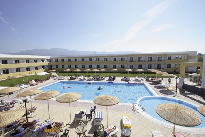 Das Hotel liegt ca. 500 m vom langen, feinsandigen Strand entfernt. Nach Marmari mit seinen Tavernen und Bars sind es ca. 400 m. Zum Flughafen sowie nach Kos-Stadt sind es ca. 15 km.