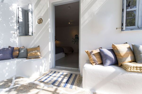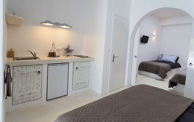 Küchenzeilen und der Fussboden sind in Kykladen Stil mit veredelten