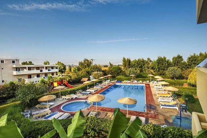 Die Hotelanlage besteht aus einem Hauptgebäude und 4 zwei-und dreistöckigen Nebengebäuden. Das Haupthaus verfügt über Rezeption, TV-Zimmer, Bar/Cafeteria und Restaurant. In der Gartenanlage befindet sich der Süßwasser-Swimmingpool mit separatem Kinderbecken und Liegewiese. Die Liegen und Sonnenschirmen erhalten Sie gegen Gebühr. Kinderspielplatz.