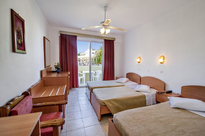 Das Hotel liegt ca. 500 m vom langen, feinsandigen Strand entfernt. Nach Marmari mit seinen Tavernen und Bars sind es ca. 400 m. Zum Flughafen sowie nach Kos-Stadt sind es ca. 15 km.