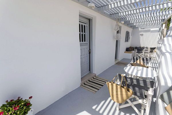 Küchenzeilen und der Fussboden sind in Kykladen Stil mit veredelten