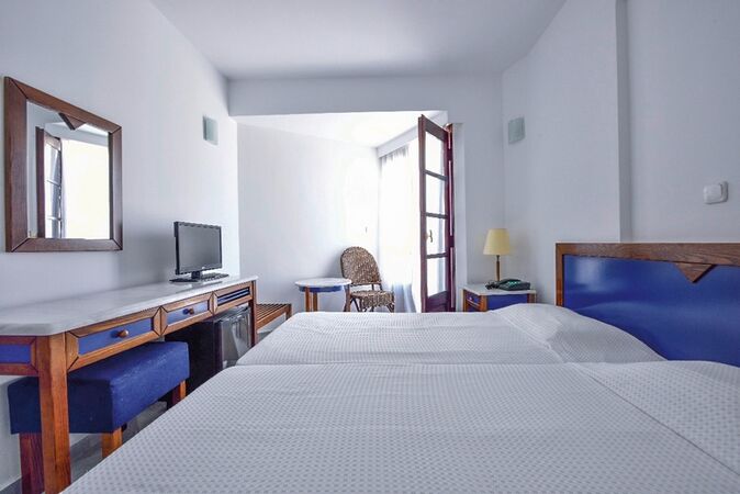 Sat-TV-Raum. Der Süßwasserpool des Schwesterhotels Kalidon Panorama kann